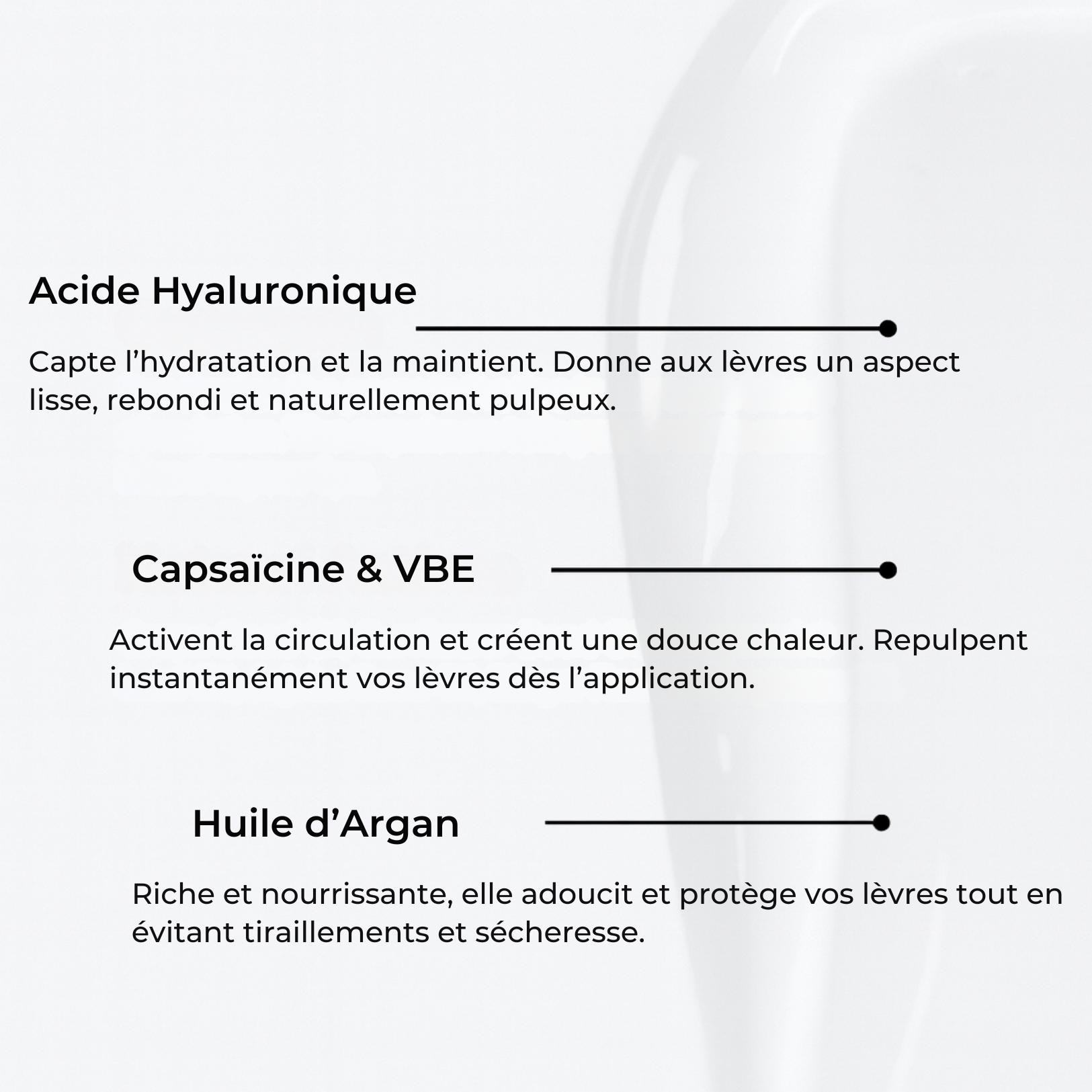 → Effet volume immédiat grâce au Capsaïcine & Ginger Extract